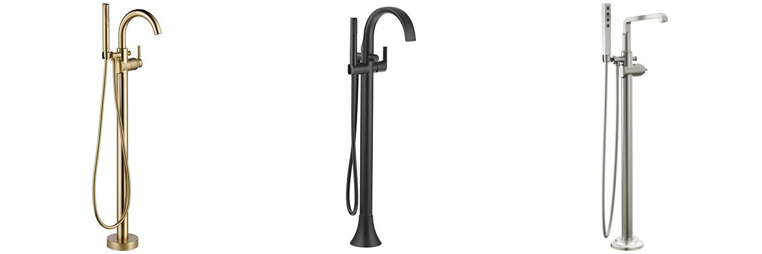 1. Delta Faucet Trinsic Floor-Mount Freestanding Tub Filler with Hand Held Shower