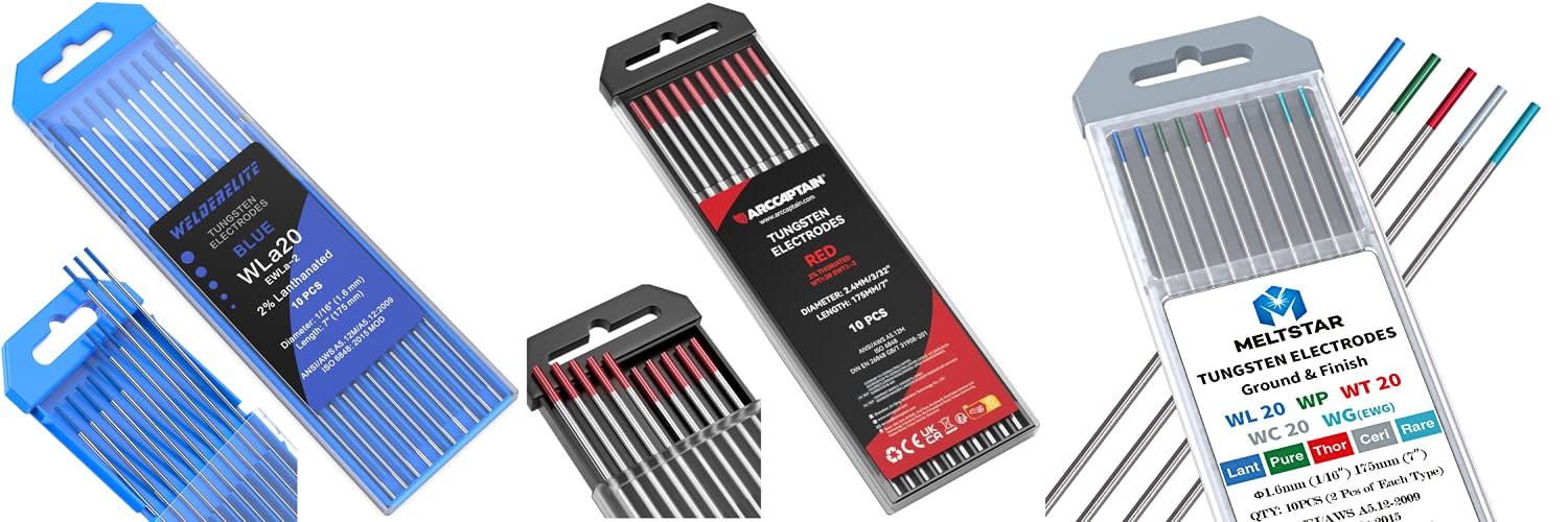 - Includes pure tungsten, cerium, lanthanated, and rare earth blends.