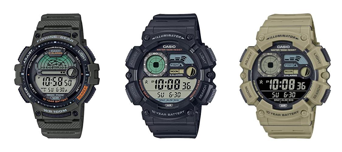 The Casio WS1500H Series is a tough digital watch for men. It is packed with features. This watch is ready for anything. It has dual time, a countdown timer, and a bright LED light. It also has a moon phase indicator and a fishing mode. This watch can handle your daily adventures. It is perfect for the outdoors.