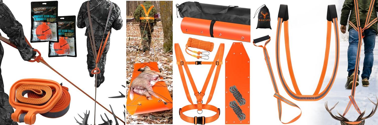 - The set comes with a durable deer drag sled made from strong polyethylene and polyester fiber. It can handle heavy loads and different types of ground.