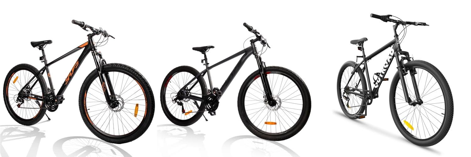 - You’ll see bikes with 27.5-inch or 29-inch wheels. Smaller wheels (27.5″) are quicker and more nimble, making them fun for tight turns. Larger wheels (29″) roll over bumps and obstacles more easily, giving you a smoother ride on rougher terrain.